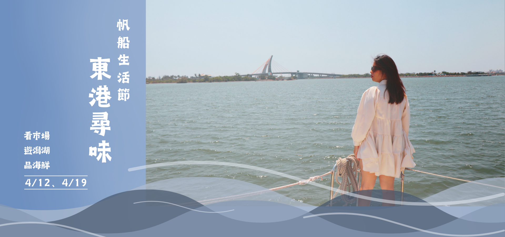 帆船啟航|大鵬灣海上巡航 航行於大鵬灣潟湖海域,欣賞港灣風景。 享用海味早餐: • 東港海鮮粥 • 綜合生魚片 |