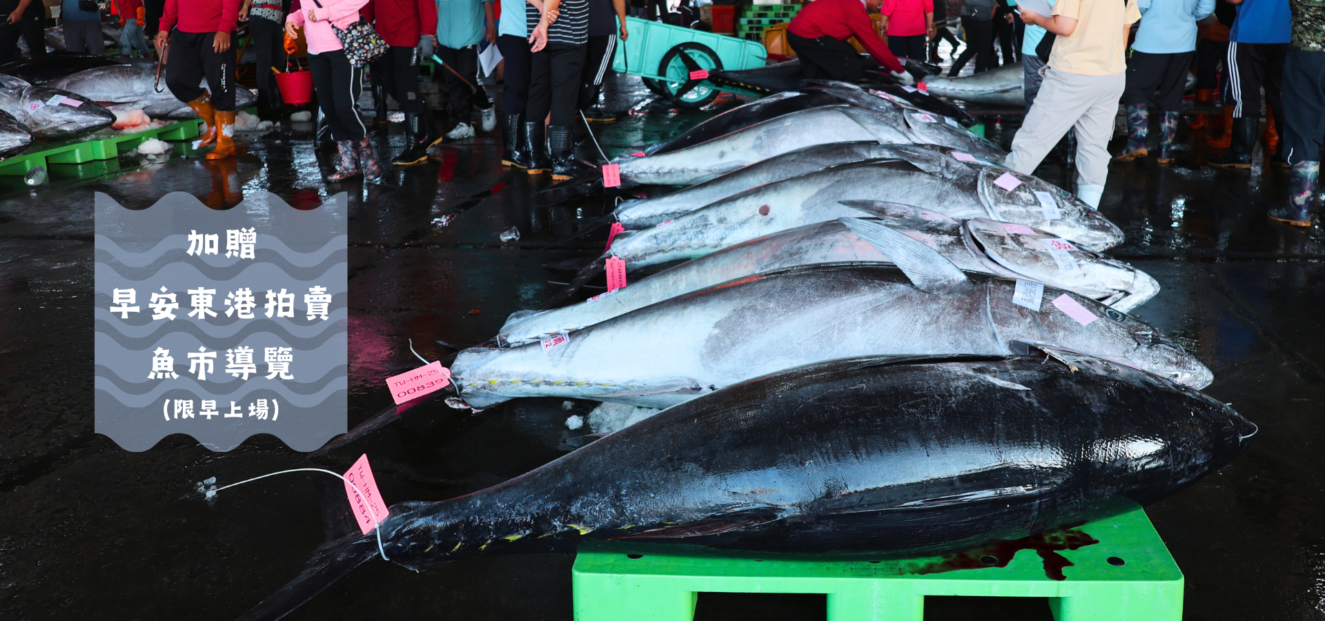 拍賣市場導覽 參觀魚貨拍賣市場,了解東港漁業文化與漁貨交易流程, 近距離感受漁港早晨的熱鬧景象。 |